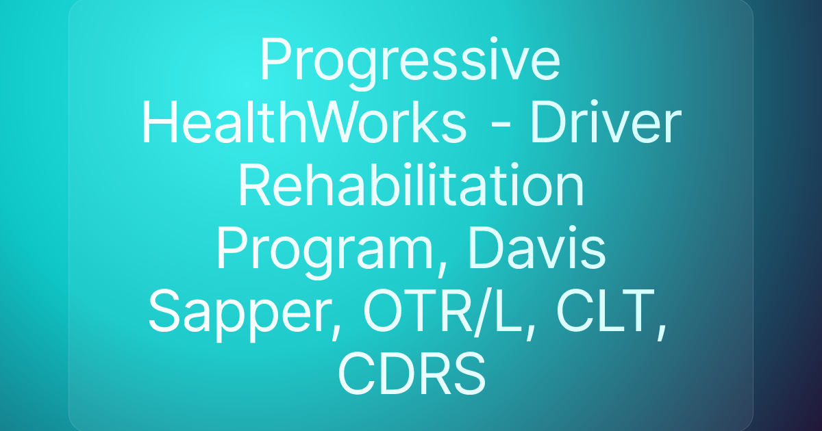 Progressive HealthWorks - Driver Rehabilitation Program, Davis Sapper, OTR/L, CLT, CDRS