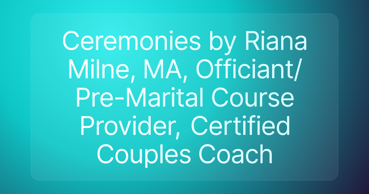 Ceremonies by Riana Milne, MA, Officiant/Pre-Marital Course Provider, Certified Couples Coach