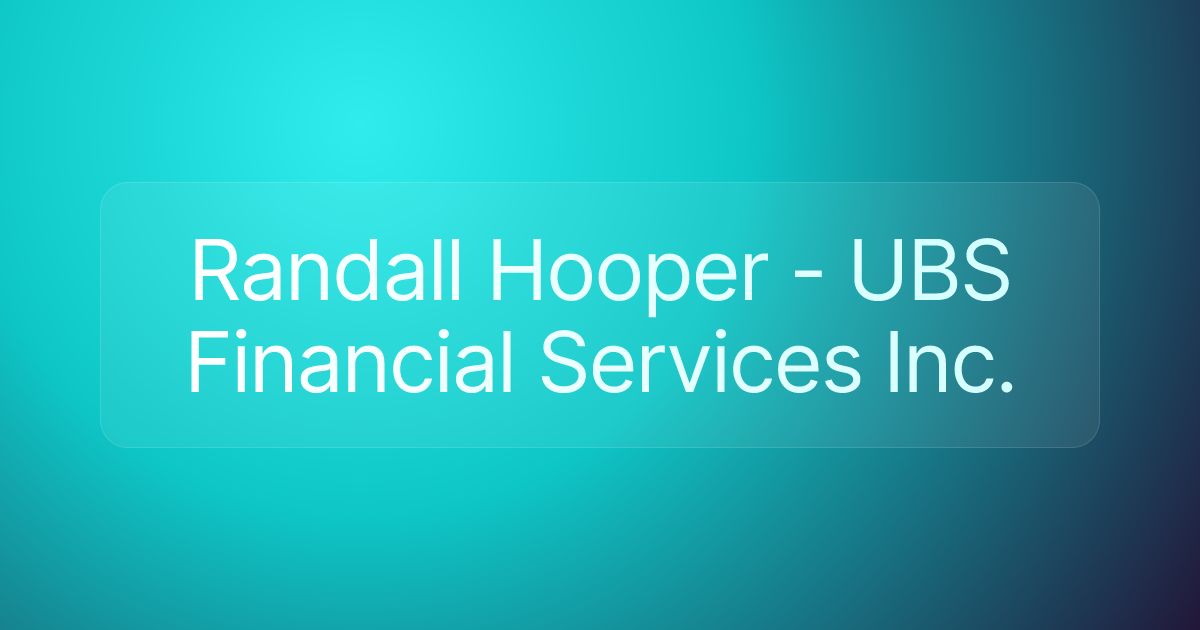 Randall Hooper - UBS Financial Services Inc.
