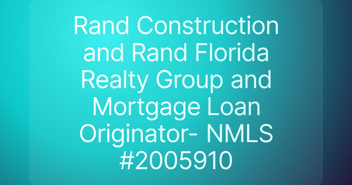 Rand Construction and Rand Florida Realty Group and Mortgage Loan Originator- NMLS #2005910