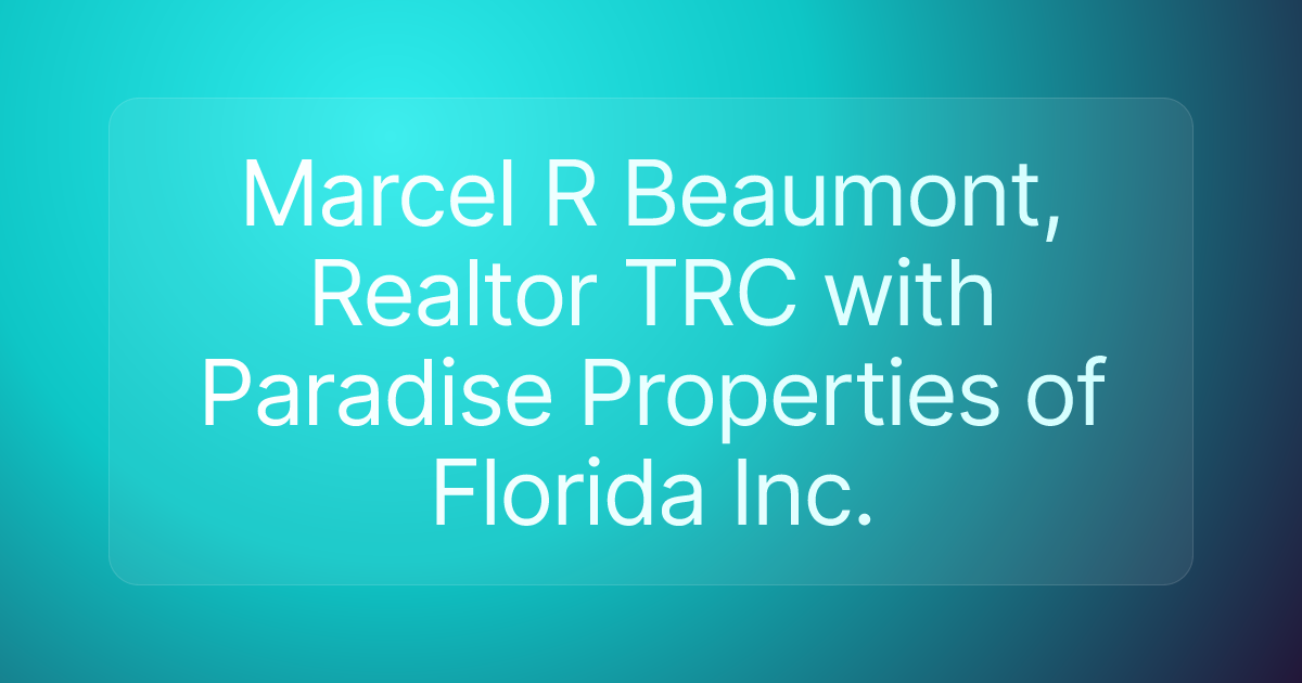 Marcel R Beaumont, Realtor TRC with Paradise Properties of Florida Inc.