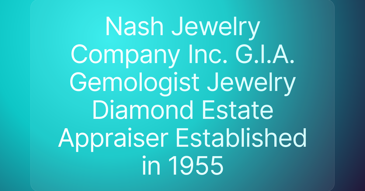 Nash Jewelry Company Inc. G.I.A. Gemologist Jewelry Diamond Estate Appraiser Established in 1955